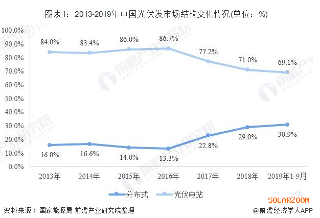 我國(guó)光伏發(fā)電發(fā)展之初,各地大力發(fā)展光伏電站,2013年,光伏電站累計(jì)裝機(jī)容量占光伏發(fā)電裝機(jī)容量的84%,處于絕對(duì)領(lǐng)先地位。